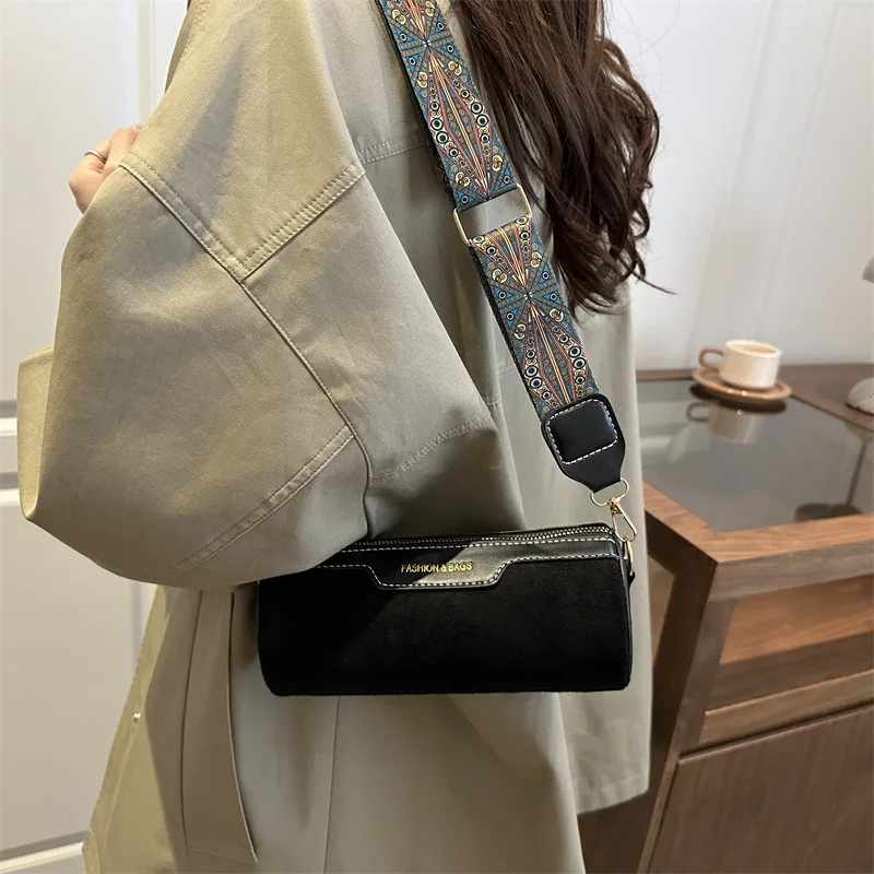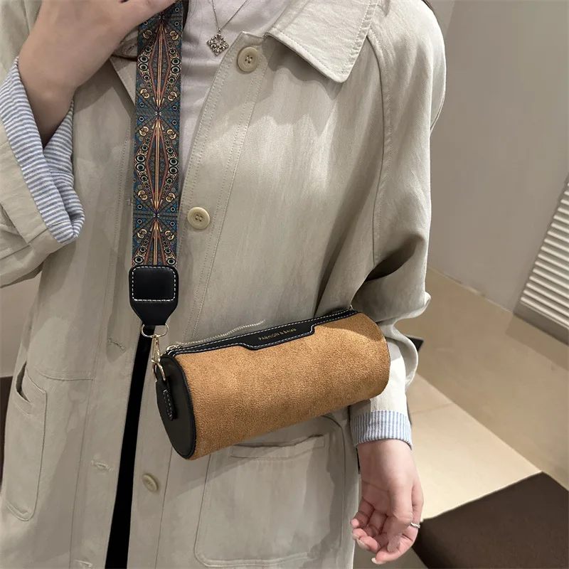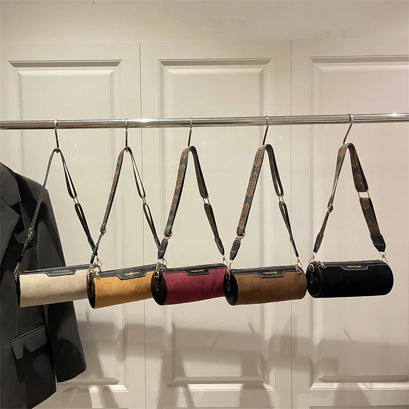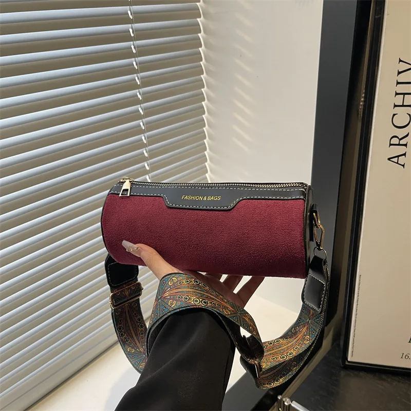 Wide Strap Women Crossbody Bags Vintage Solid Color PU Leather Ladies Shoulder Bucket Bag Designer Luxury Handbags